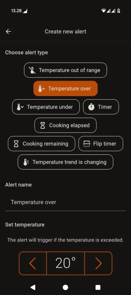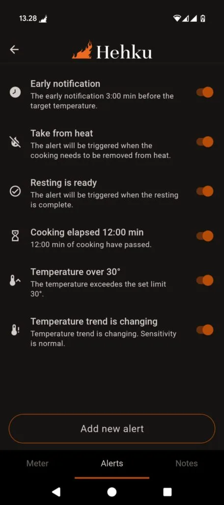 - Temperature trend is changing – Alerts you when the temperature trend starts to rise or fall unexpectedly. This alert will help you notice changes in the cooking temperature (beta feature).